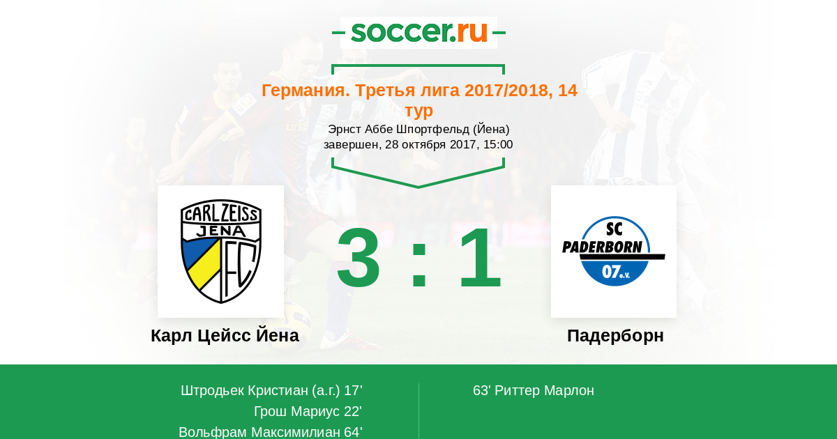 Карл Цейсс Йена - Падерборн: обзор матча 28 октября 2017