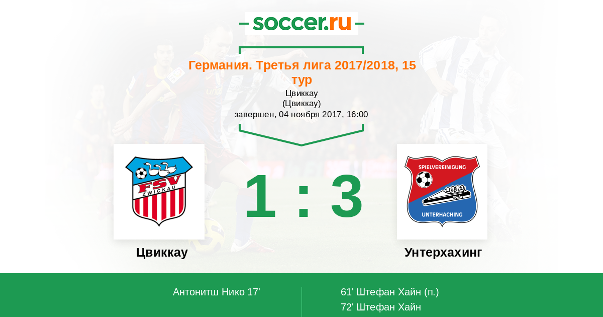 Цвиккау - Унтерхахинг: обзор матча 4 ноября 2017