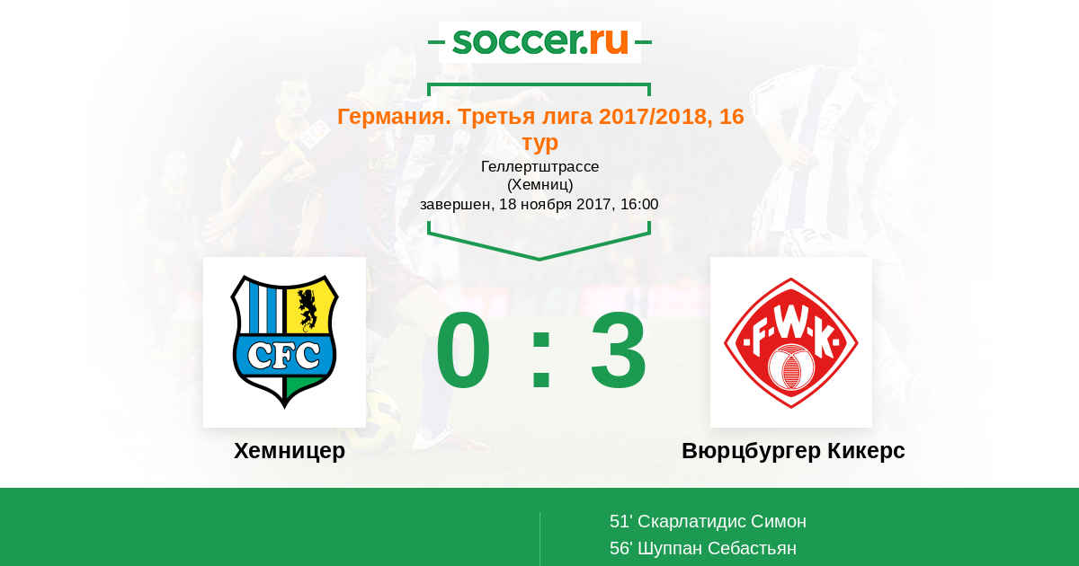 Хемницер - Вюрцбургер Кикерс: обзор матча 18 ноября 2017