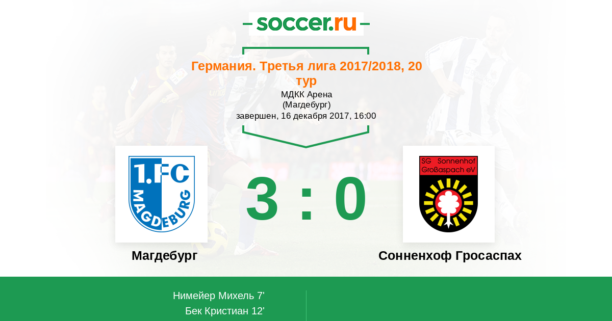 Магдебург - Сонненхоф Гросаспах: обзор матча 16 декабря 2017