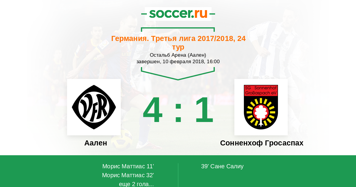 Аален - Сонненхоф Гросаспах: обзор матча 10 февраля 2018
