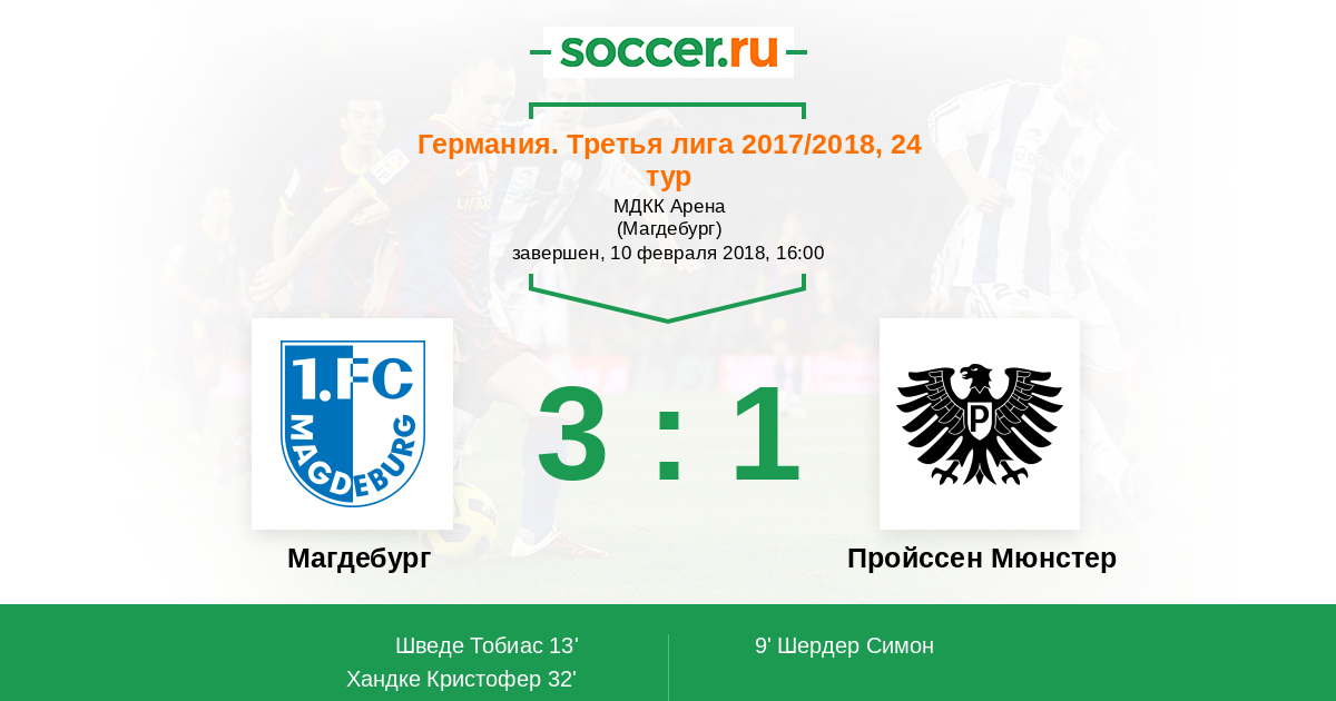Магдебург - Пройcсен Мюнстер: обзор матча 10 февраля 2018