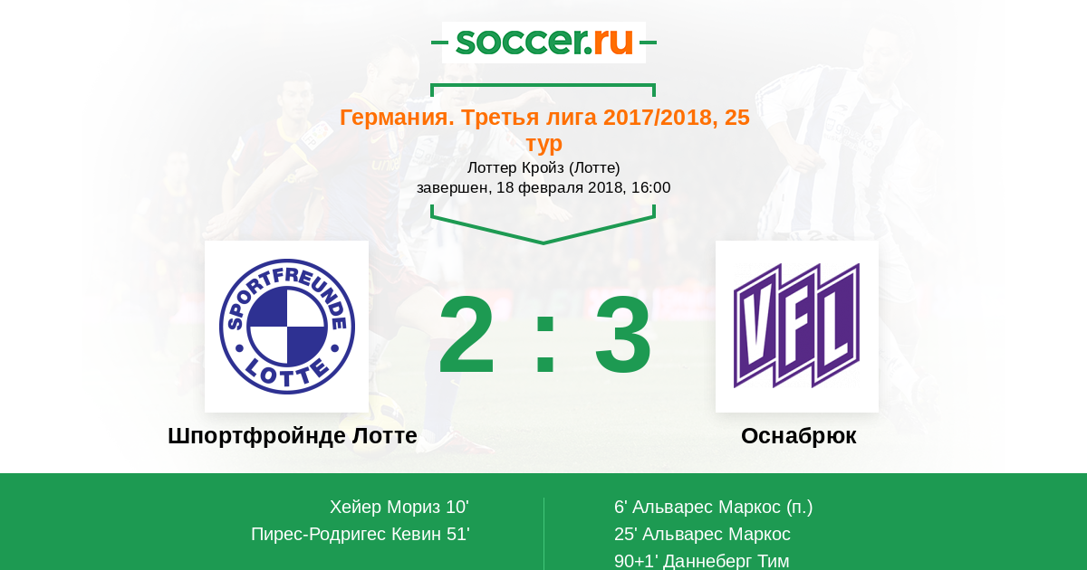 Шпортфройнде Лотте - Оснабрюк: обзор матча 18 февраля 2018