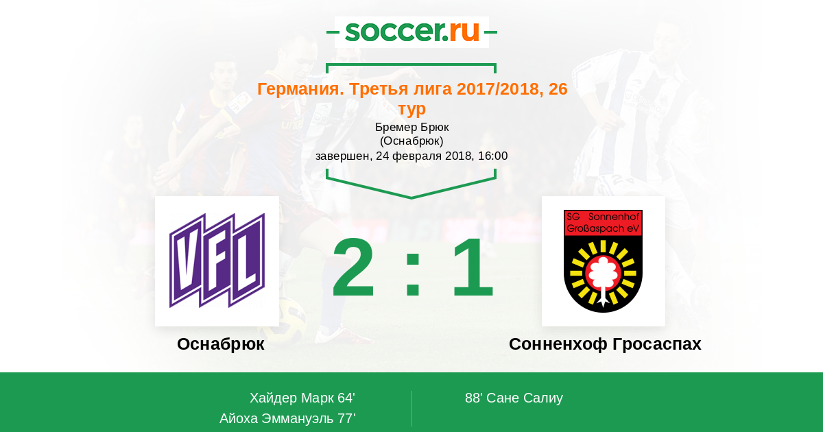Оснабрюк - Сонненхоф Гросаспах: обзор матча 24 февраля 2018