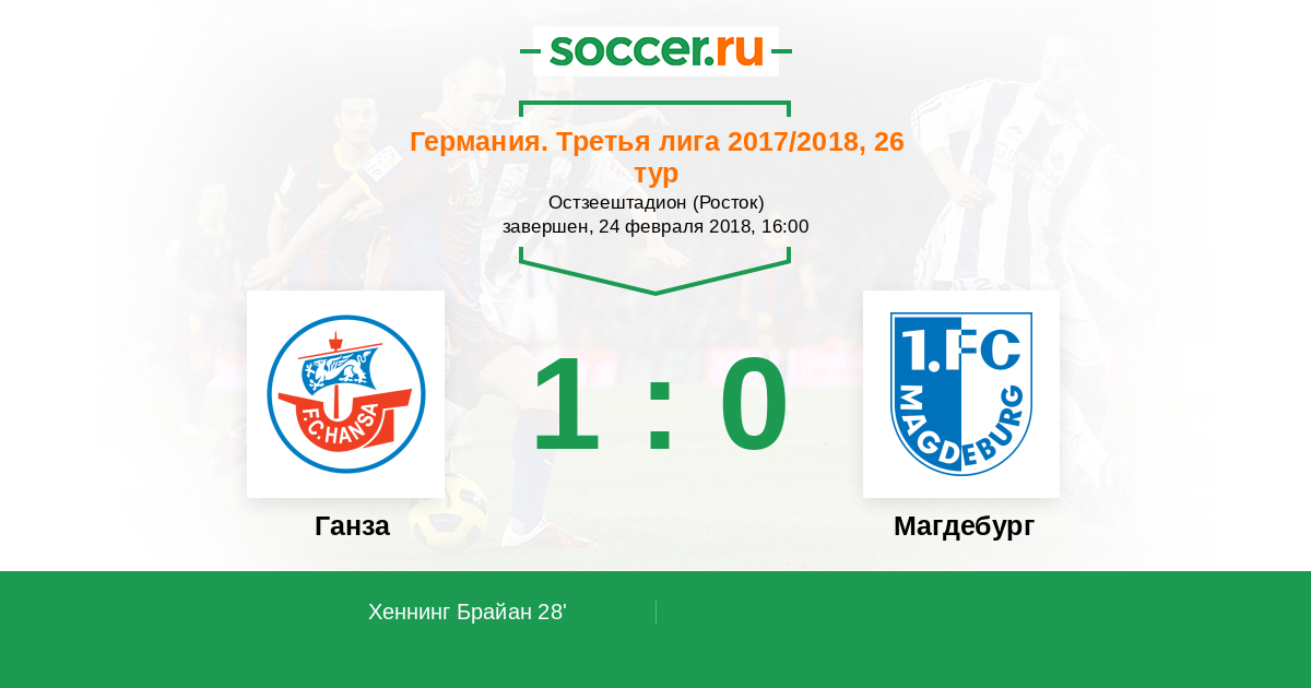 Ганза - Магдебург: обзор матча 24 февраля 2018