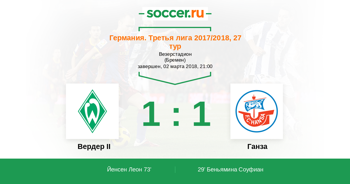 Вердер II - Ганза: обзор матча 2 марта 2018