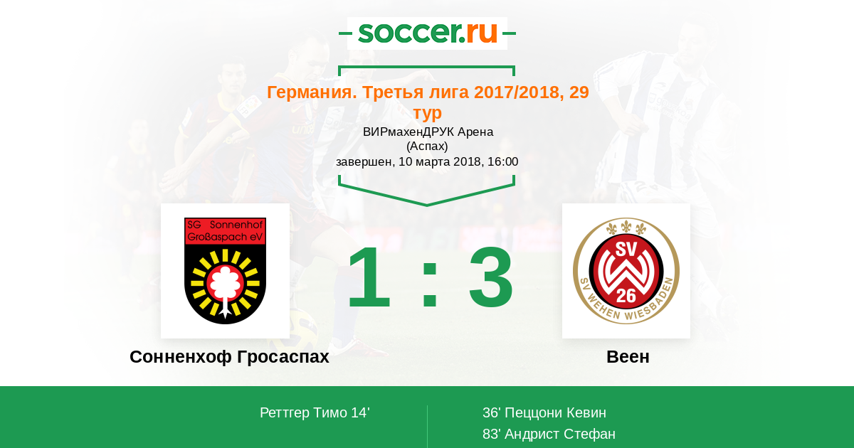 Сонненхоф Гросаспах - Веен: обзор матча 10 марта 2018