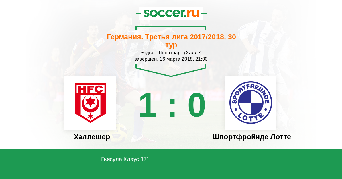 Халлешер - Шпортфройнде Лотте: обзор матча 16 марта 2018