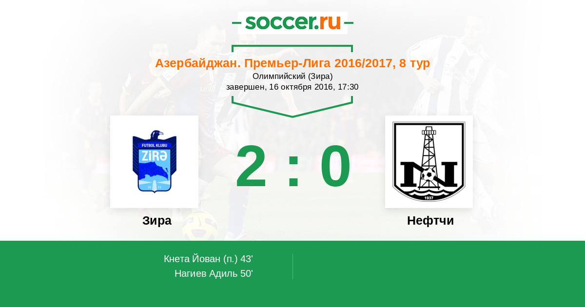 Зира - Нефтчи: обзор матча 16 октября 2016