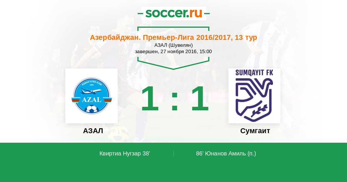 АЗАЛ - Сумгаит: обзор матча 27 ноября 2016