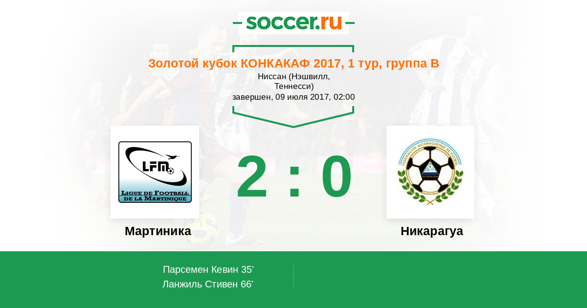 Мартиника - Никарагуа: обзор матча 9 июля 2017
