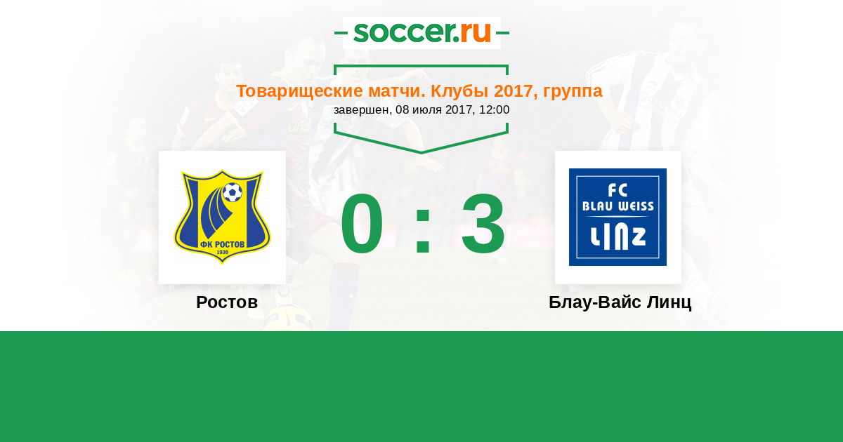 Ростов - Блау-Вайс Линц: обзор матча 8 июля 2017