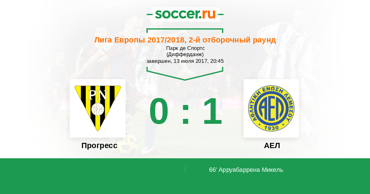 Прогресс - АЕЛ: обзор матча 13 июля 2017