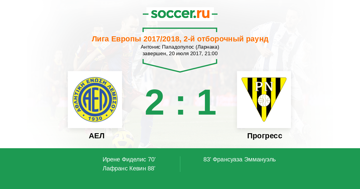 АЕЛ - Прогресс: обзор матча 20 июля 2017