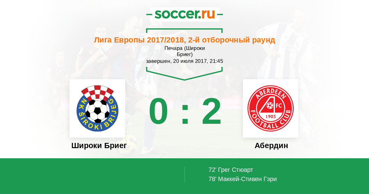 Широки Бриег - Абердин: обзор матча 20 июля 2017