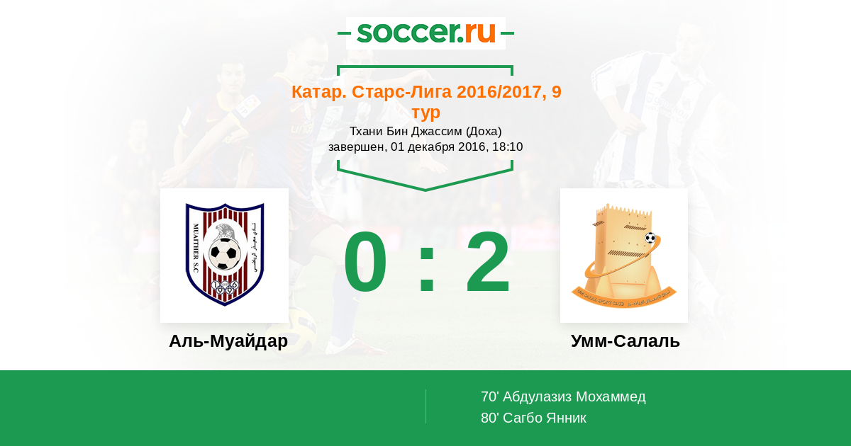 Аль-Муайдар - Умм-Салаль: обзор матча 1 декабря 2016