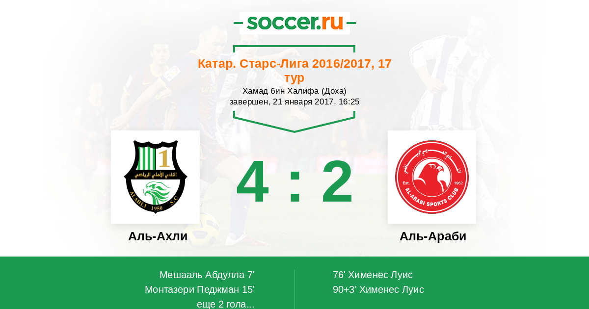 Аль-Ахли - Аль-Араби: обзор матча 21 января 2017