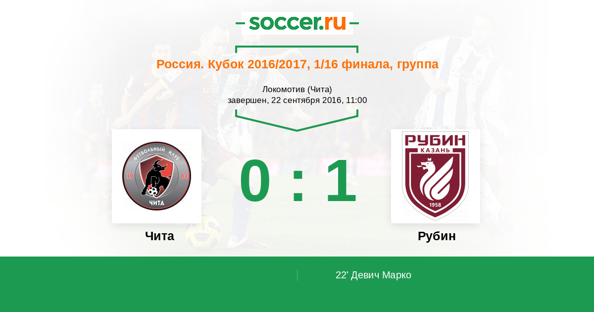 Чита - Рубин: обзор матча 22 сентября 2016