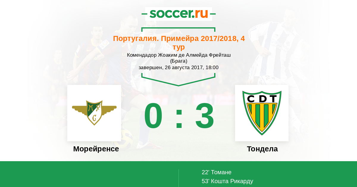 Морейренcе - Тондела: обзор матча 26 августа 2017