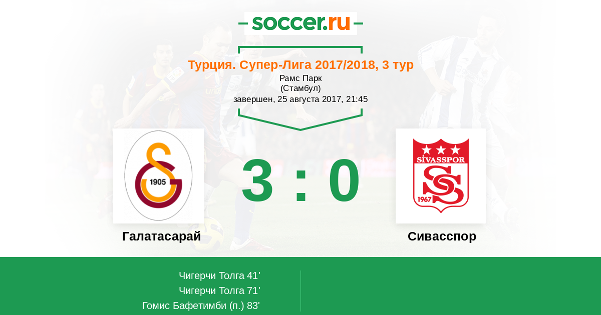 Галатасарай - Сивасспор: обзор матча 25 августа 2017
