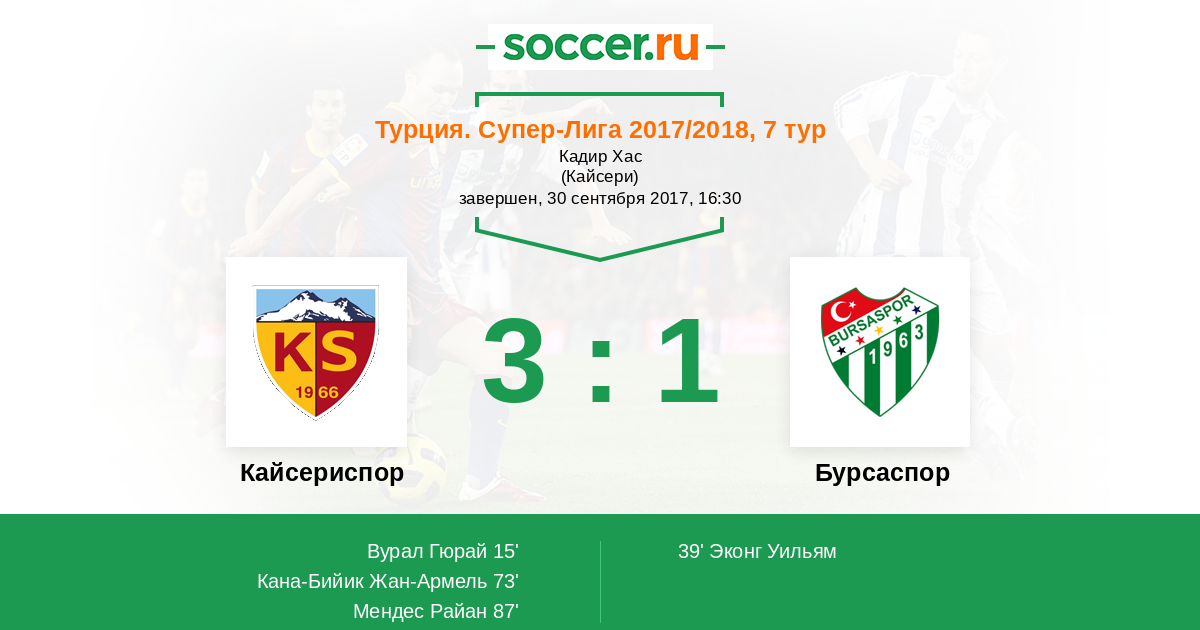 Кайсериспор - Бурсаспор: обзор матча 30 сентября 2017