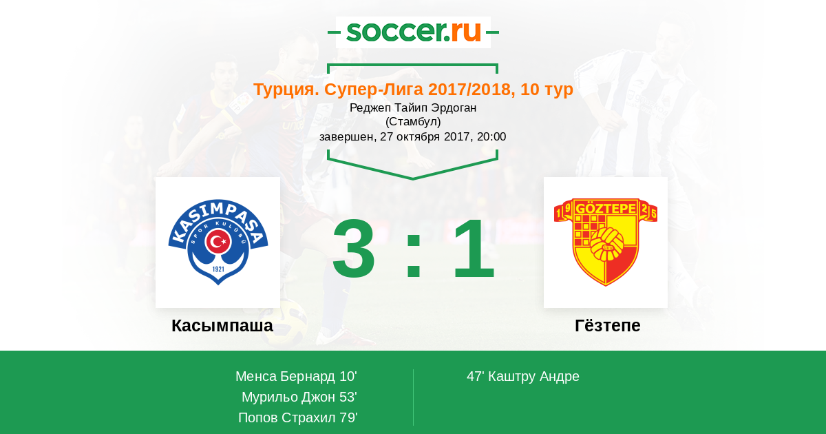 Касымпаша - Гёзтепе: обзор матча 27 октября 2017