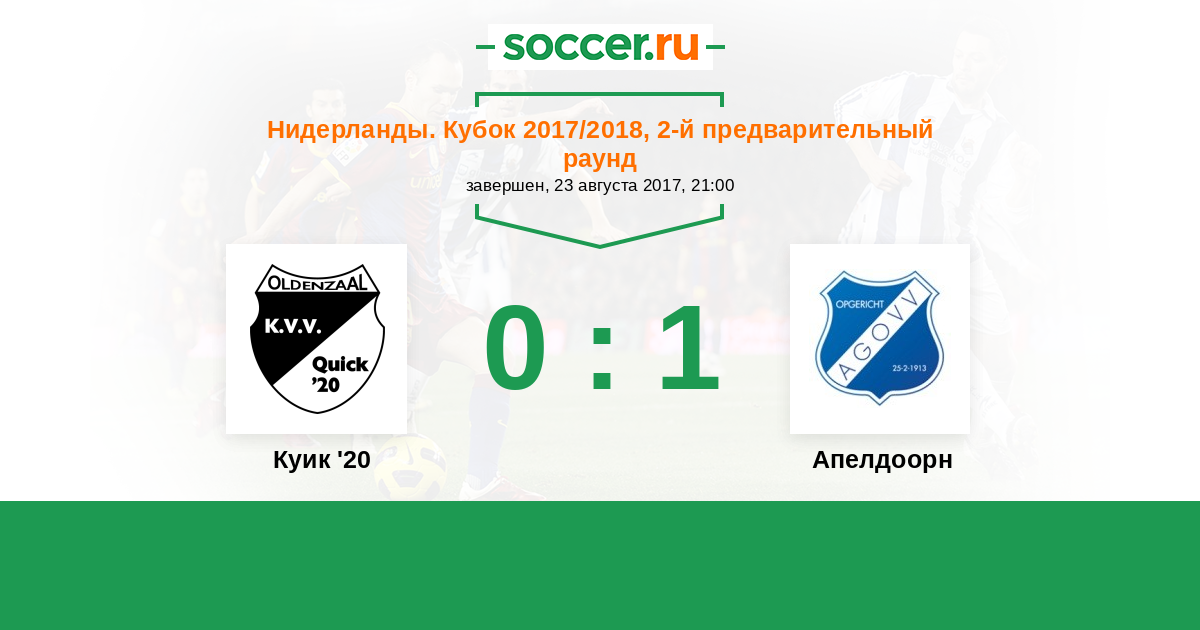 Куик '20 - Апелдоорн: обзор матча 23 августа 2017