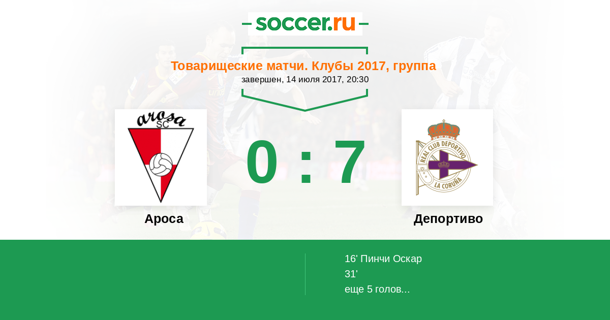 Ароса - Депортиво: обзор матча 14 июля 2017