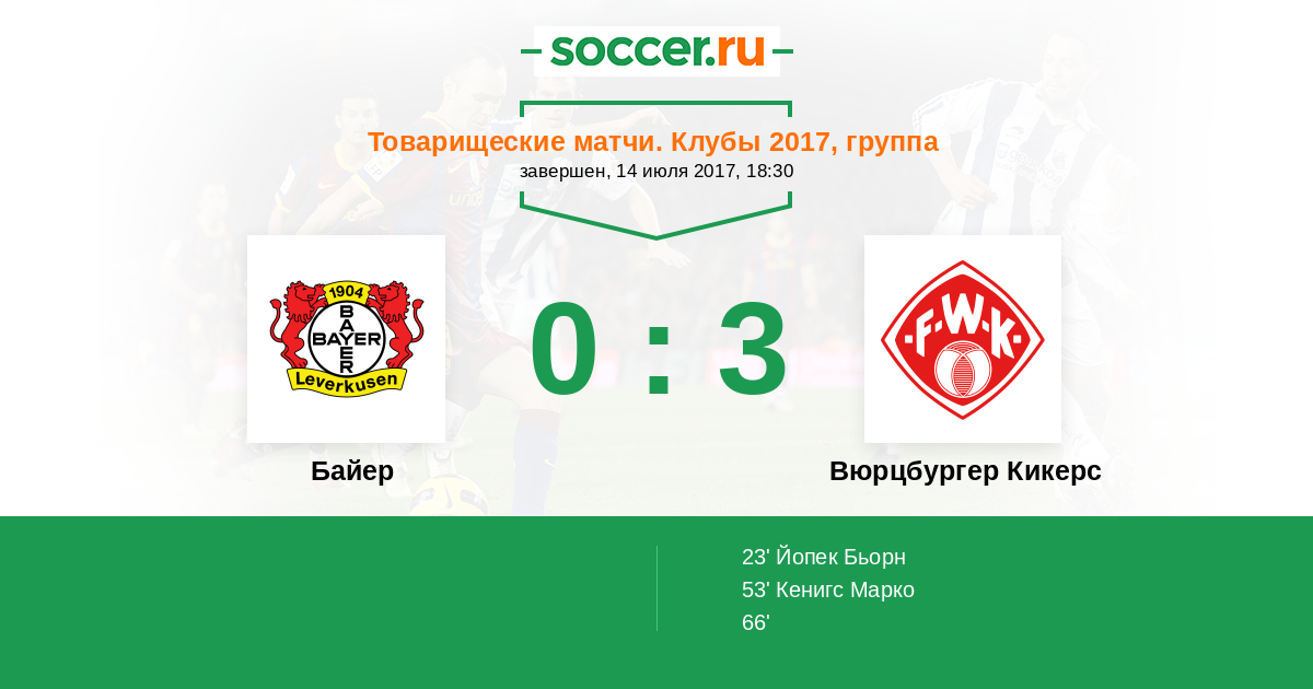 Байер - Вюрцбургер Кикерс: обзор матча 14 июля 2017