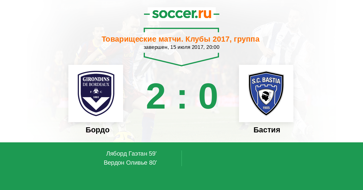 Бордо - Бастия: обзор матча 15 июля 2017
