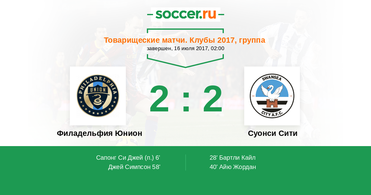Филадельфия Юнион - Суонси Сити: обзор матча 16 июля 2017