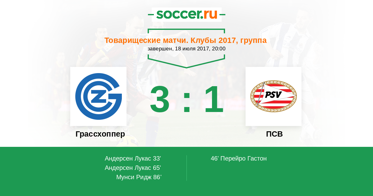 Грассхоппер - ПСВ: обзор матча 18 июля 2017