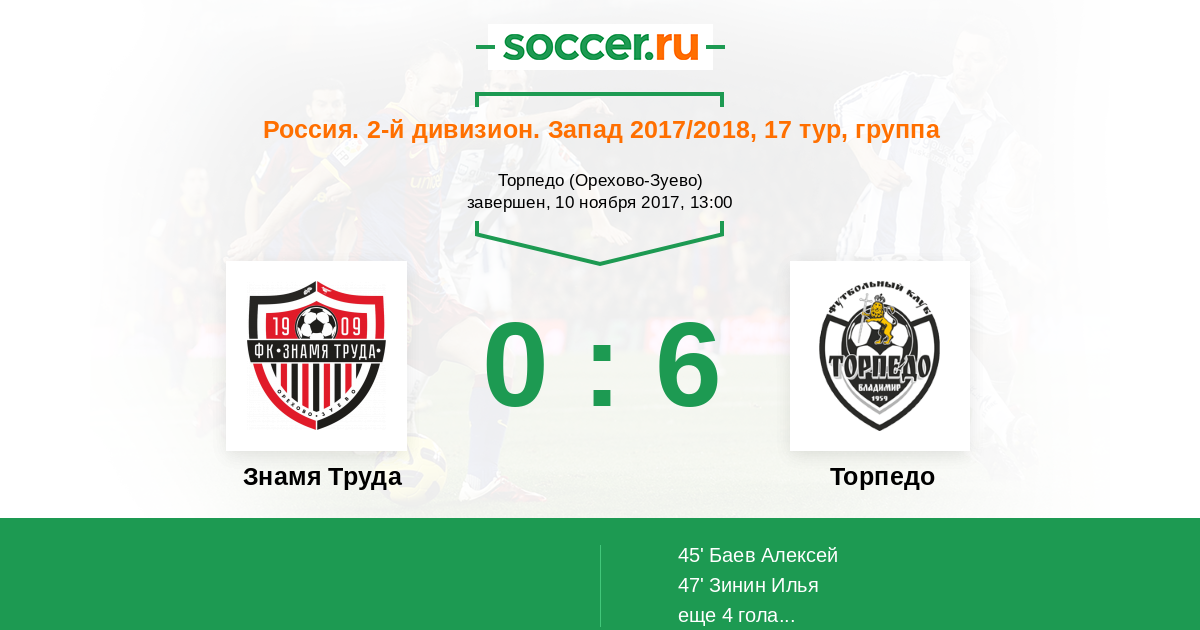 Знамя Труда - Торпедо: обзор матча 10 ноября 2017