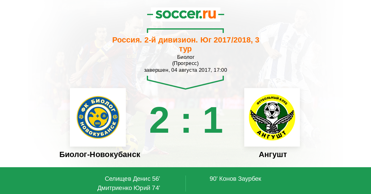 Биолог-Новокубанск - Ангушт: обзор матча 4 августа 2017