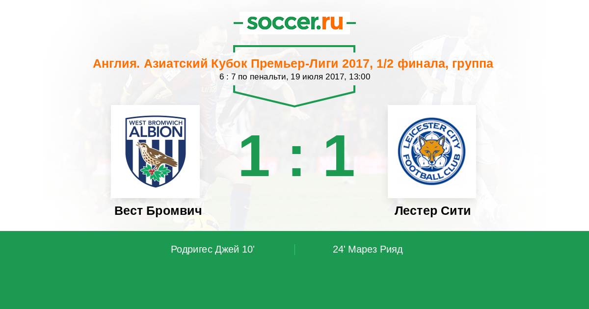 Вест Бромвич - Лестер Сити: обзор матча 19 июля 2017