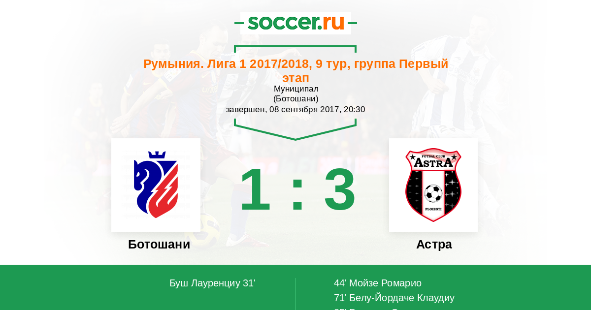 Ботошани - Астра: обзор матча 8 сентября 2017