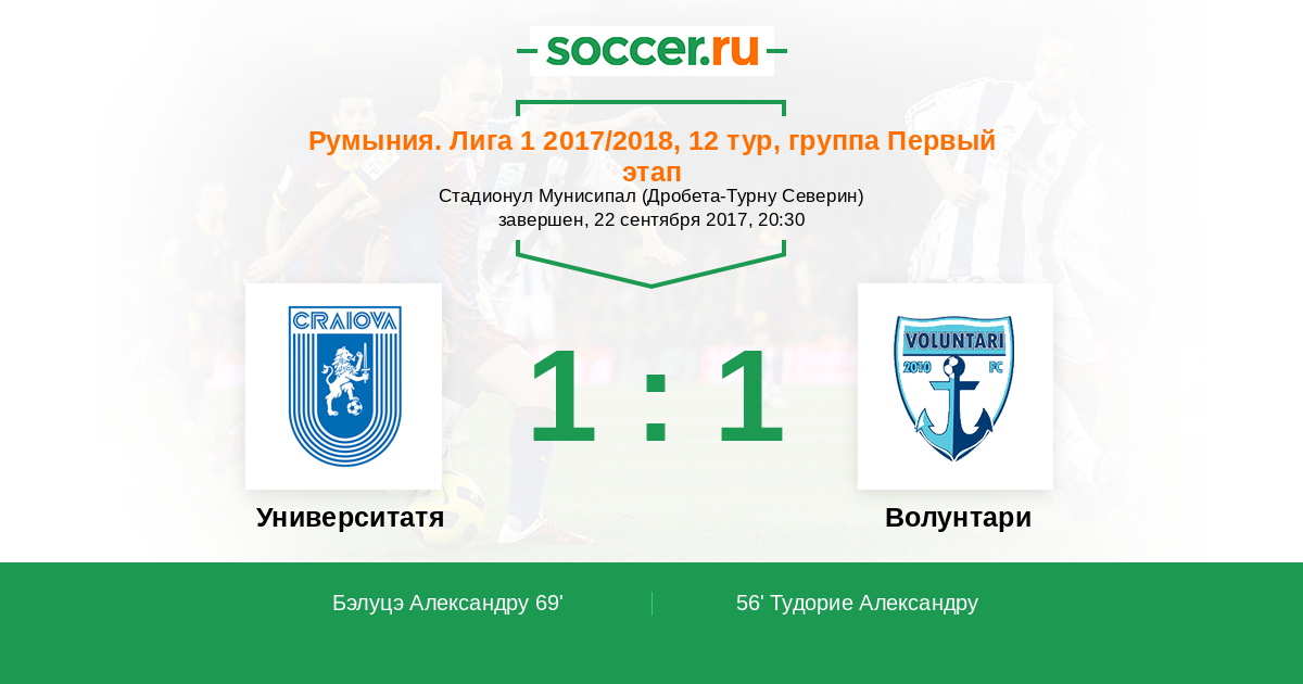 Университатя Крайова - Волунтари: обзор матча 22 сентября 2017
