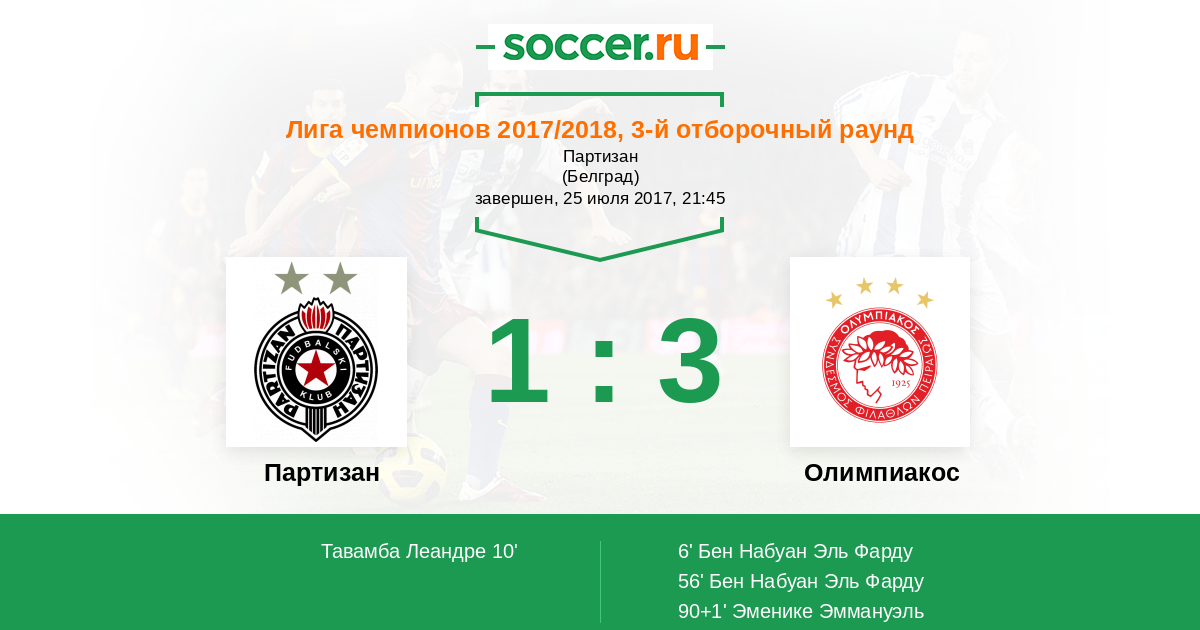 Партизан - Олимпиакос: обзор матча 25 июля 2017