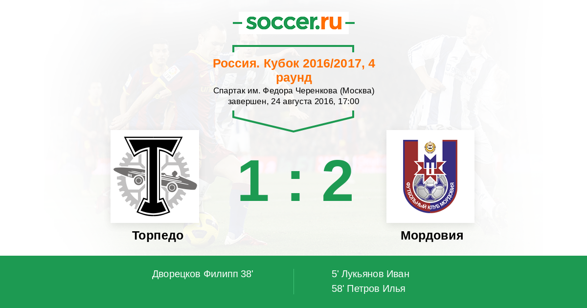 Торпедо - Мордовия: обзор матча 24 августа 2016