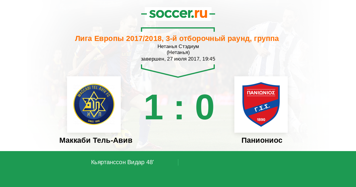 Маккаби Тель-Авив - Паниониос: обзор матча 27 июля 2017