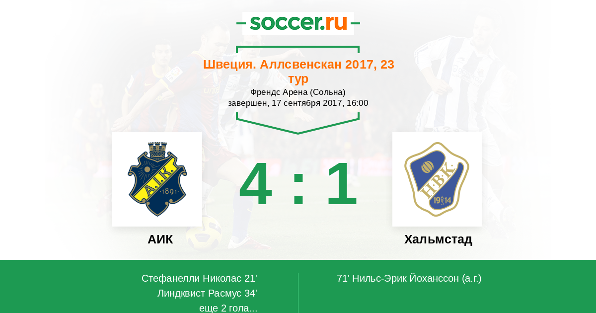 АИК - Хальмстад: обзор матча 17 сентября 2017
