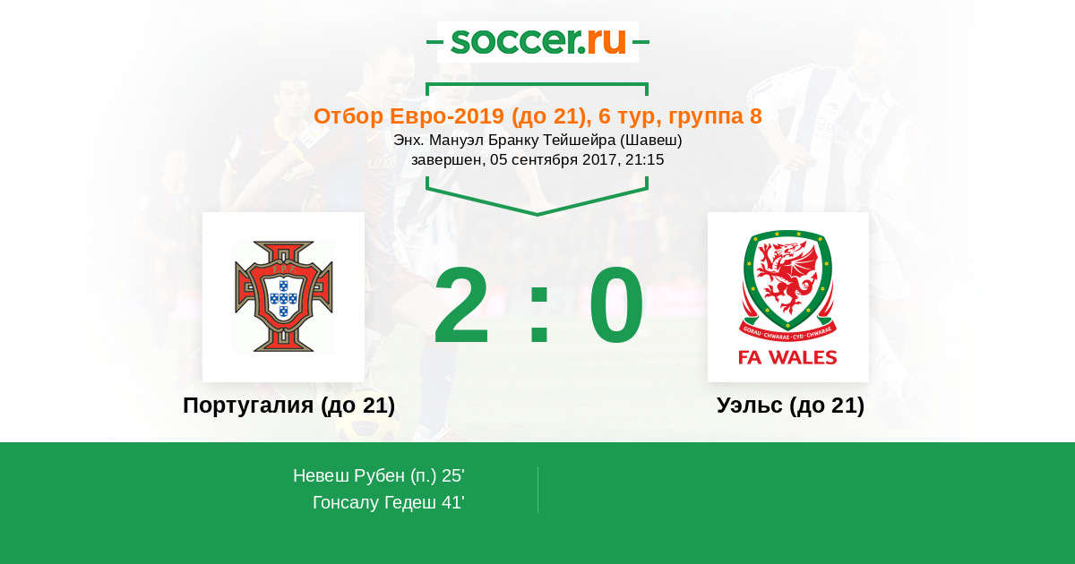 Португалия (до 21) - Уэльс (до 21): обзор матча 5 сентября 2017