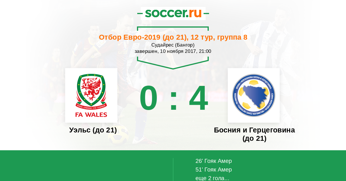 Уэльс (до 21) - Босния и Герцеговина (до 21): обзор матча 10 ноября 2017
