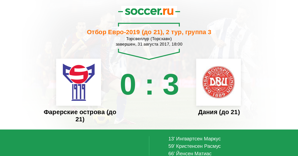Фарерские острова (до 21) - Дания (до 21): обзор матча 31 августа 2017
