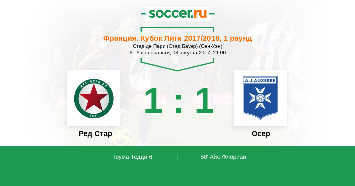 Ред Стар - Осер: обзор матча 8 августа 2017