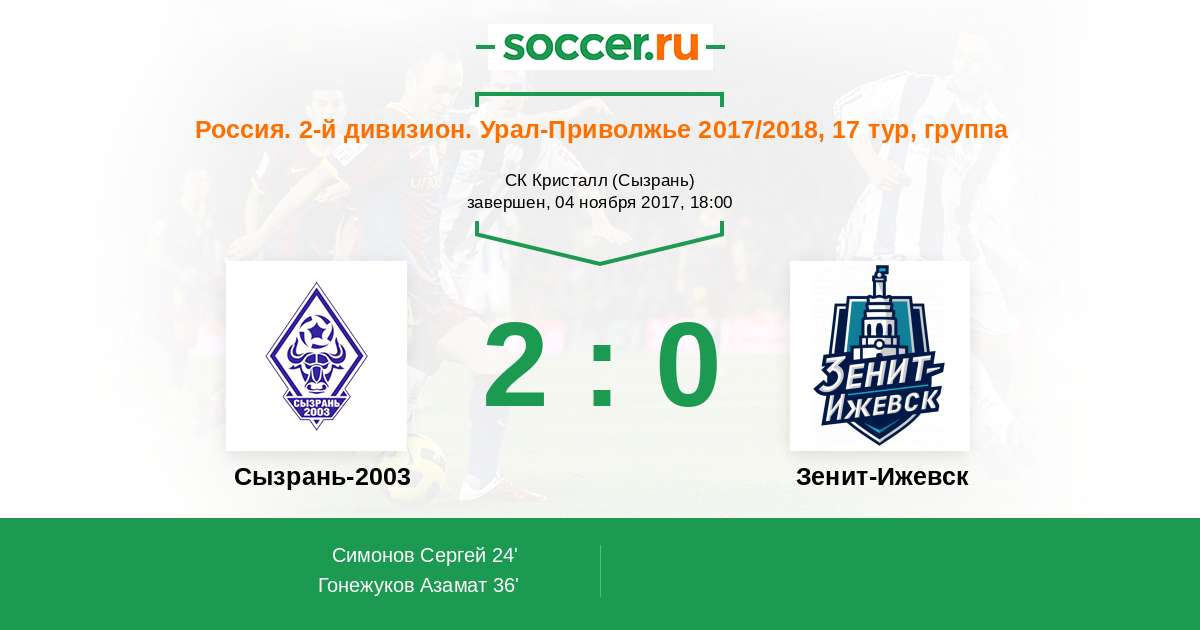 Сызрань-2003 - Зенит-Ижевск: обзор матча 4 ноября 2017