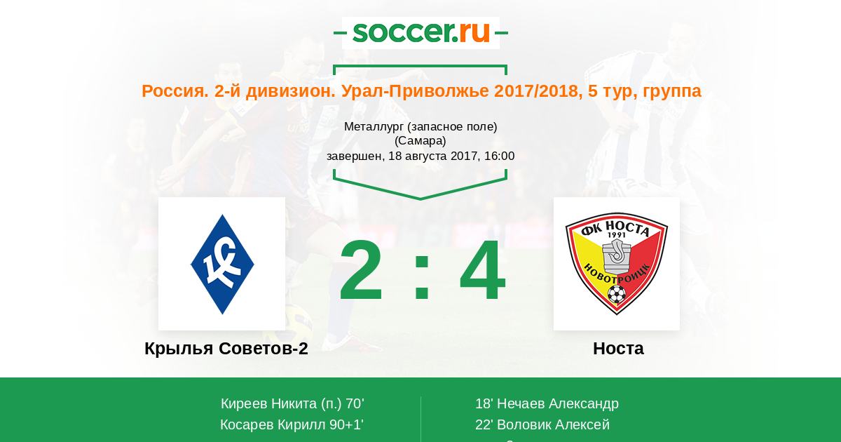 Крылья Советов-2 - Носта: обзор матча 18 августа 2017