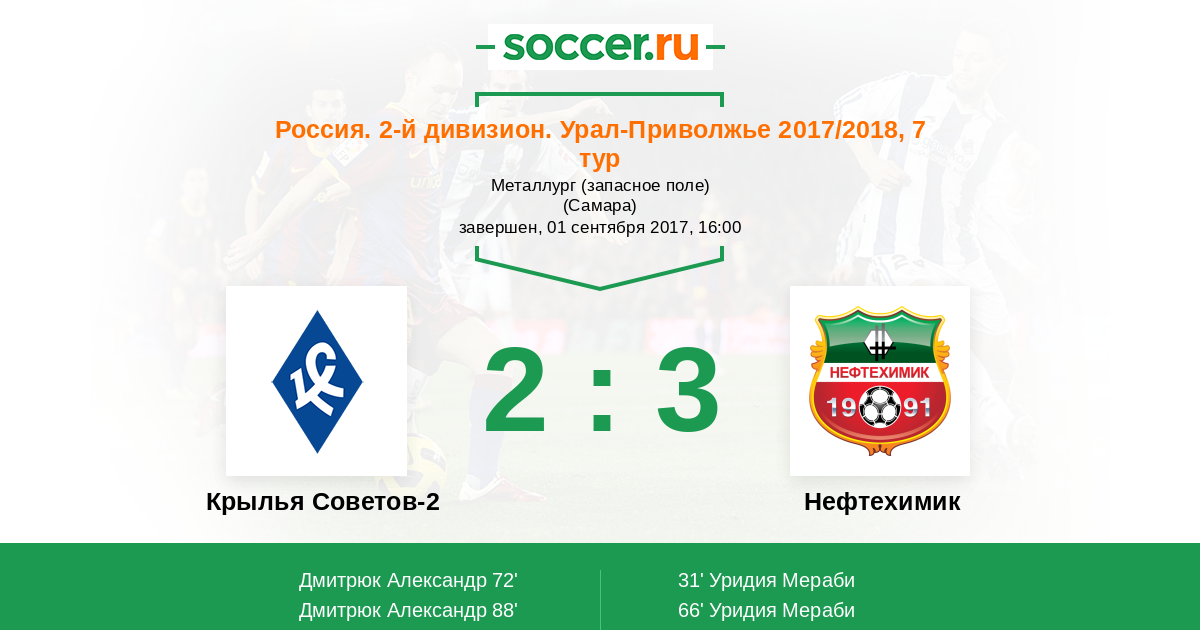 Крылья Советов-2 - Нефтехимик: обзор матча 1 сентября 2017