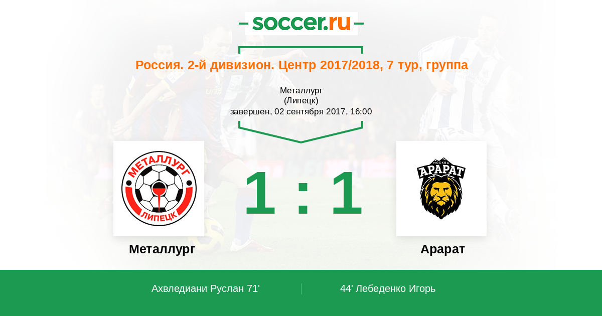 Металлург - Арарат: обзор матча 2 сентября 2017