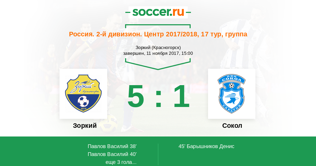 Зоркий - Сокол: обзор матча 11 ноября 2017